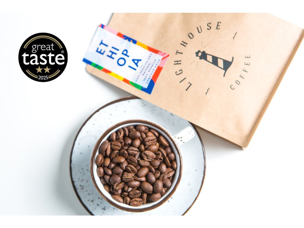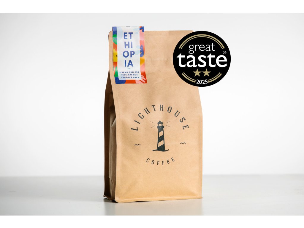 Lighthouse Coffee Ethiopia Sidamo Guji GR2: Ručne zbieraná výberová káva zaujme očarujúcou sviežosťou - s ocenením GREAT TASTE AWARDS 2025.