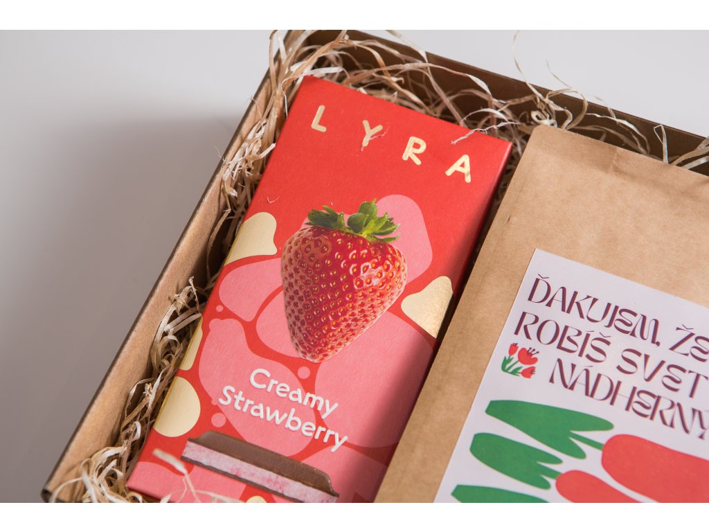A k tomu skvelá Lyra Creamy Strawberry: Mliečna čokoláda s jahodovou náplňou kombinuje najlepšiu kvalitu čokolády Fino de Aroma so sladkou chuťou jahôd.