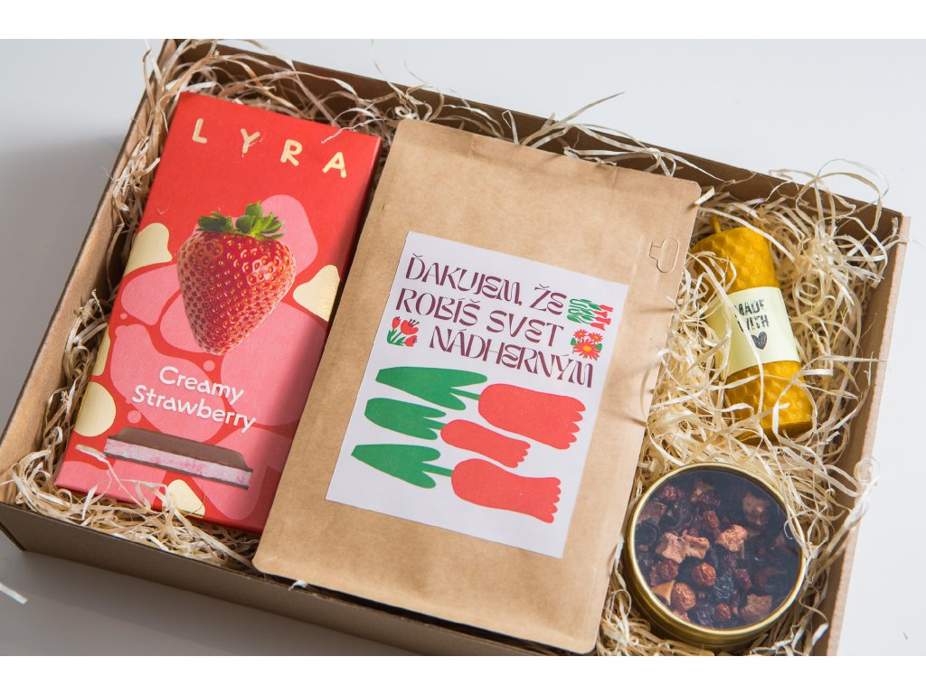 Balíček je zabalený v ekologickej papierovej krabici s okienkom, v ktorom produkty krásne vyniknú.