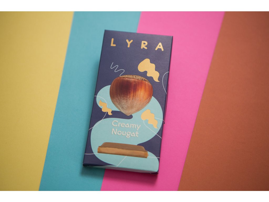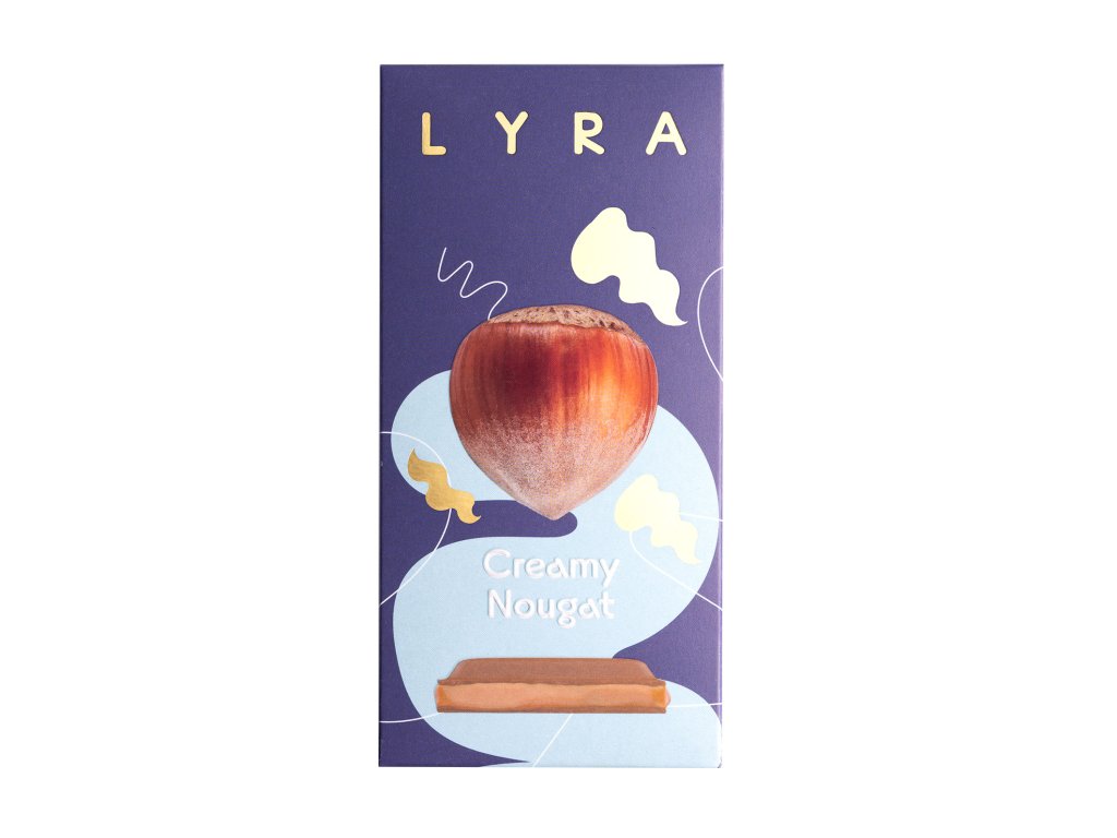 Lyra Creamy Nougat: Biela čokoláda plnená lieskovo-orieškovou náplňou, 80 g