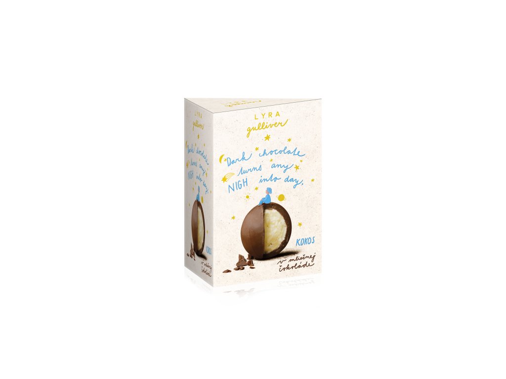 Zloženie: Mliečna čokoláda s kokosovou náplňou.
