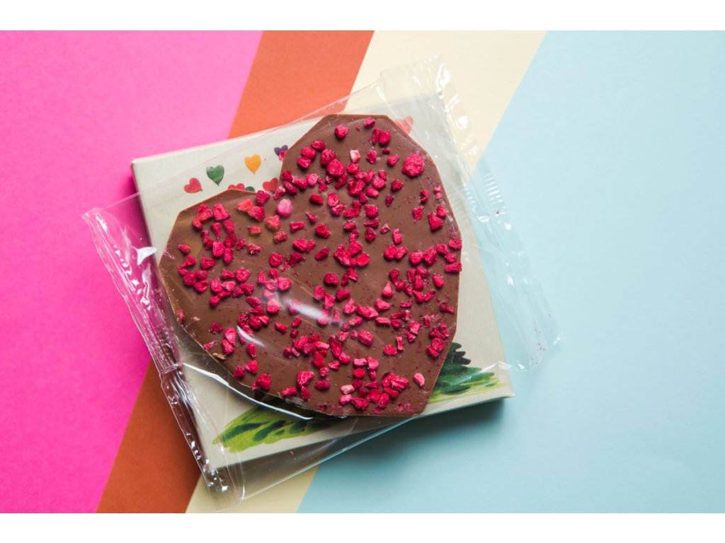 Mliečna čokoláda v tvare SRDCA s posypom malina.
