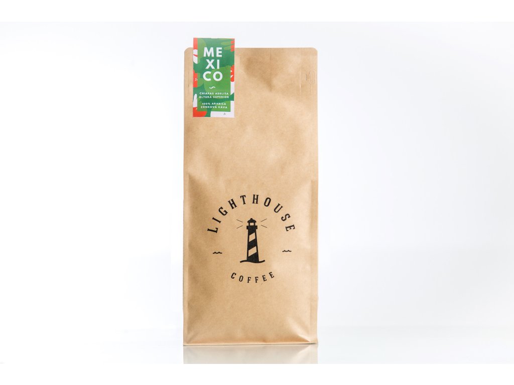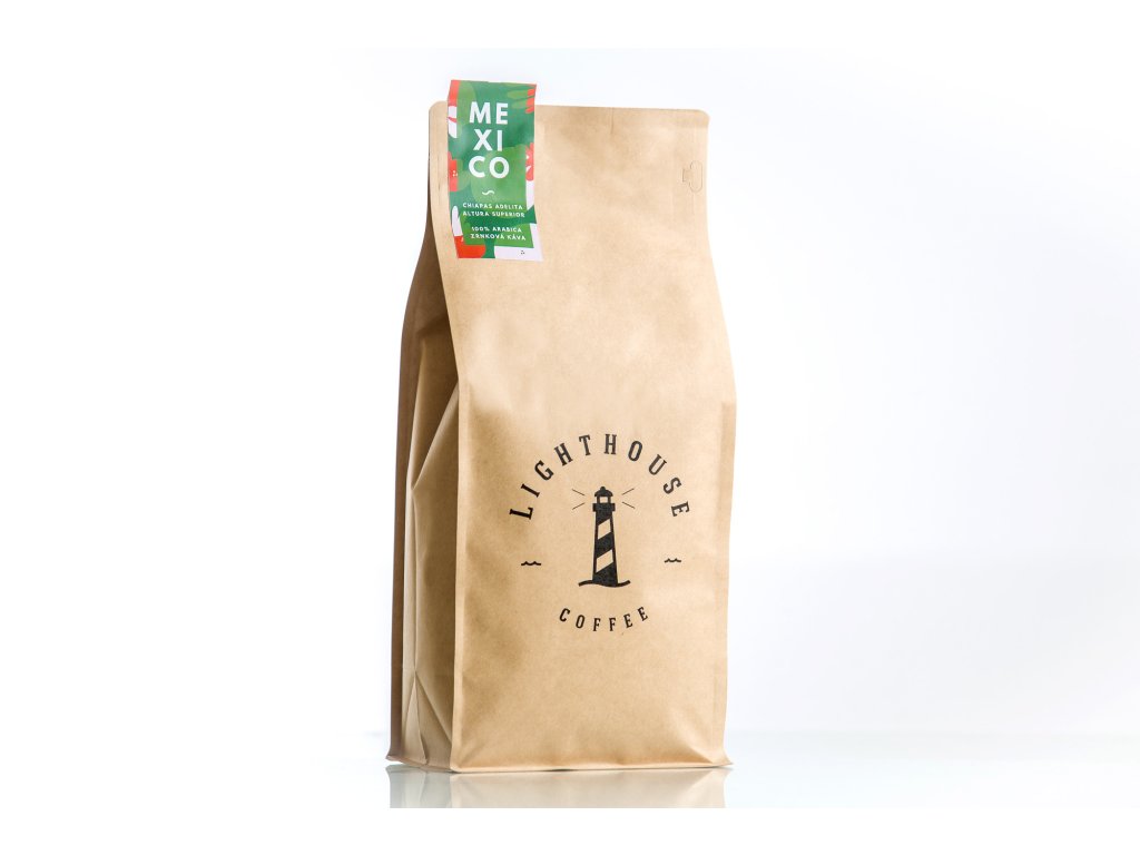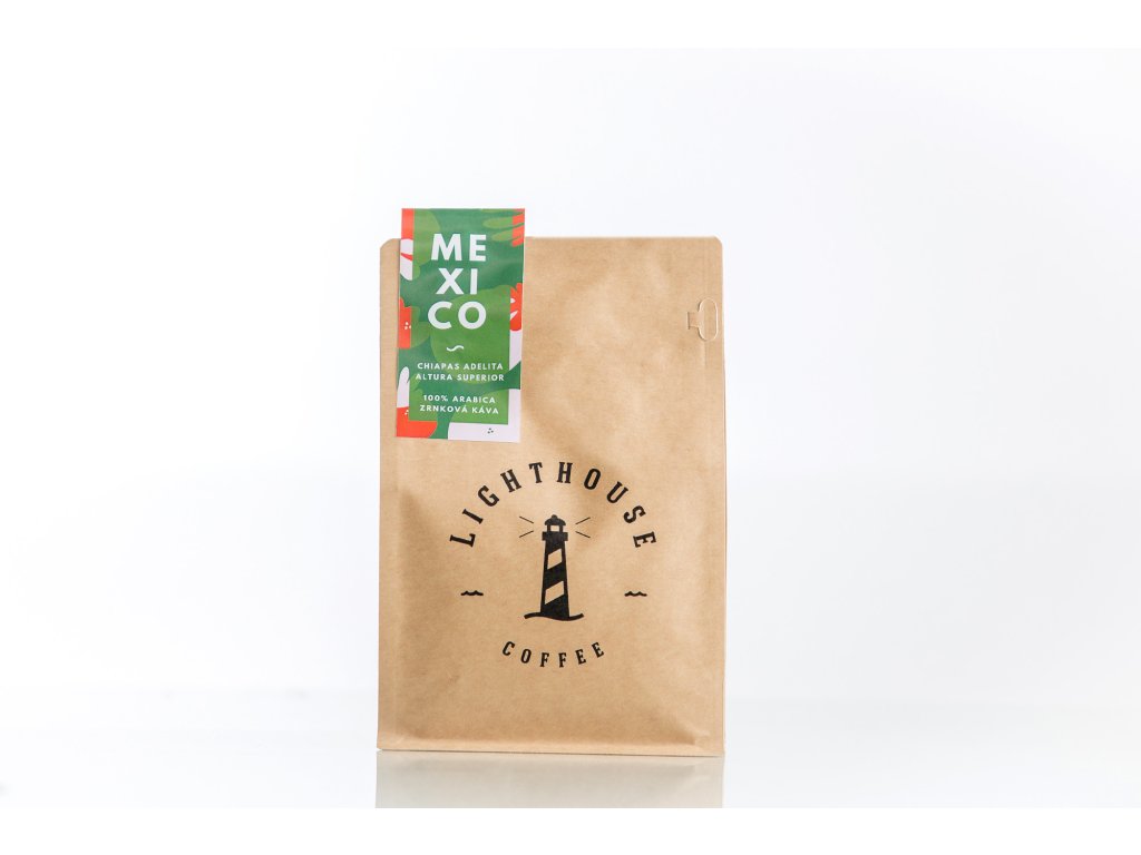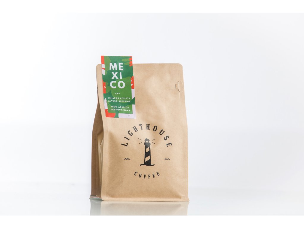 Lighthouse Coffee Mexico Chiapas Adelita Altura Superior, zrnková káva: Ideálna každodenná káva pre tých, ktorí hľadajú harmonickú chuť kávy bez výraznej kyslosti.