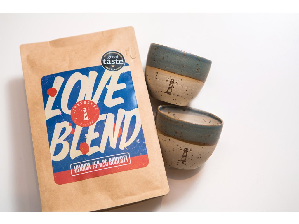 Zrnková káva Lighthouse Coffee Loveblend & dve keramické šálky